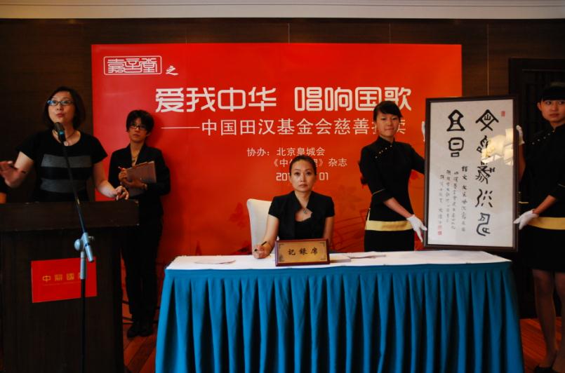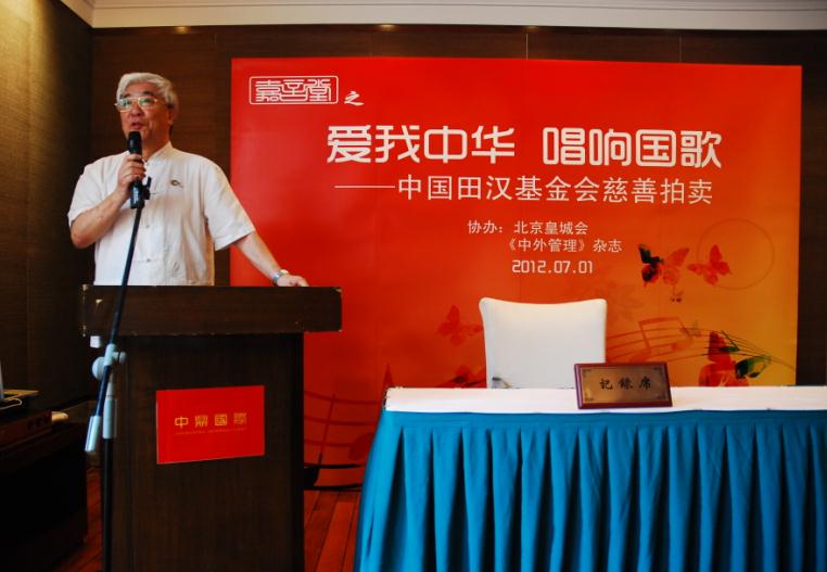 2012年7月1日下午,作为文化交流平台“嘉言堂”系列活动之一,由中国田汉基金会主办,北京皇城会、《中外管理》杂志协办的 “爱我中华 唱响国歌”——田汉基金会慈善拍卖活动正式开启。田汉基金会理事长、著名戏剧家苏叔阳,田汉基金会副理事长徐沛东、韩美林,著名国学大师文怀沙等出席活动。